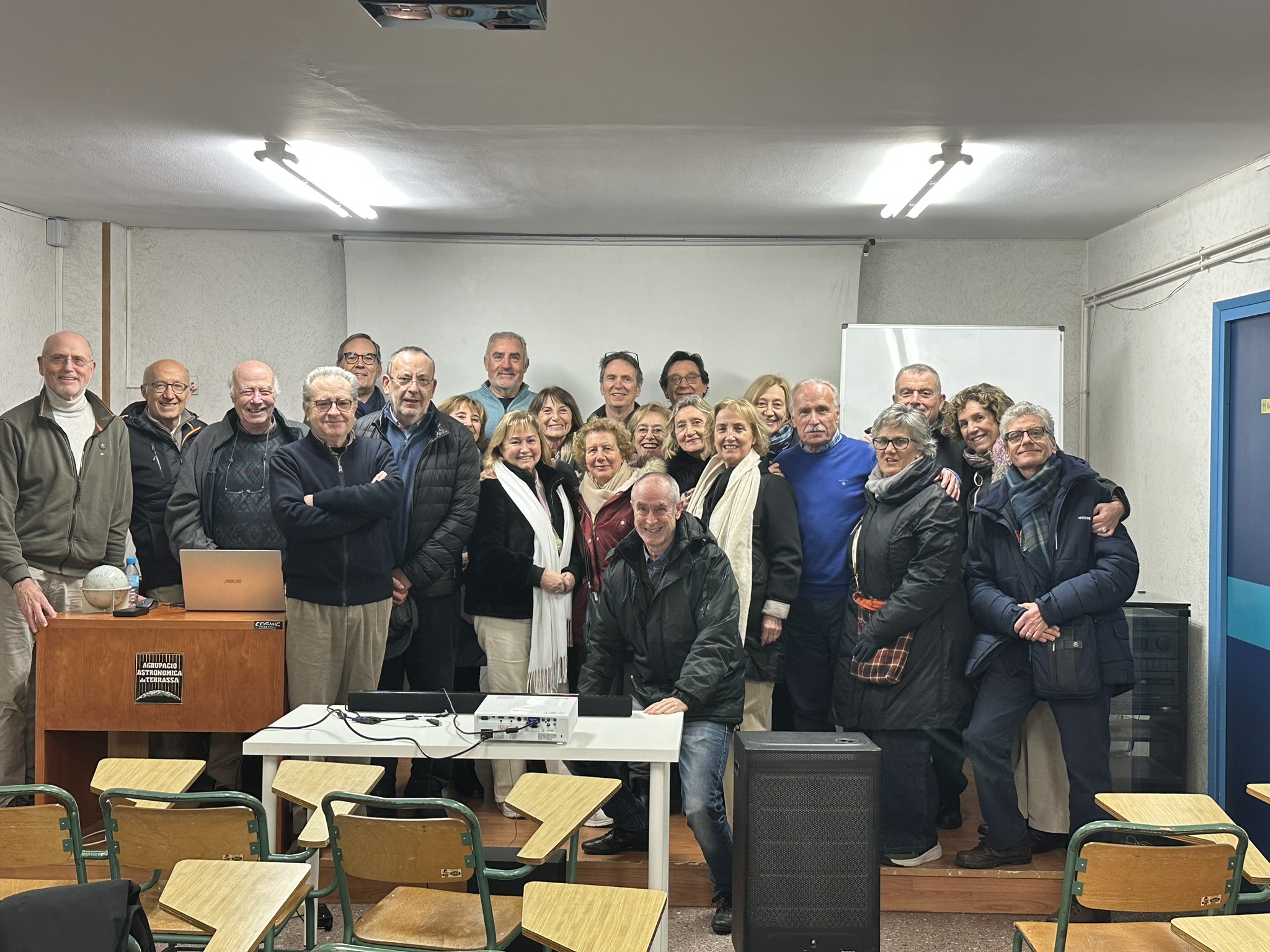 Després d’una sessió teòrica del cel nocturn, hem passat al terrat amb el telescopi de l’Agrupació on hem gaudit individualment de veure la Lluna amb els mars i cràters, Júpiter,la nebulosa d’Orió, l’alineació Júpiter-Lluna-Saturn, etc.
